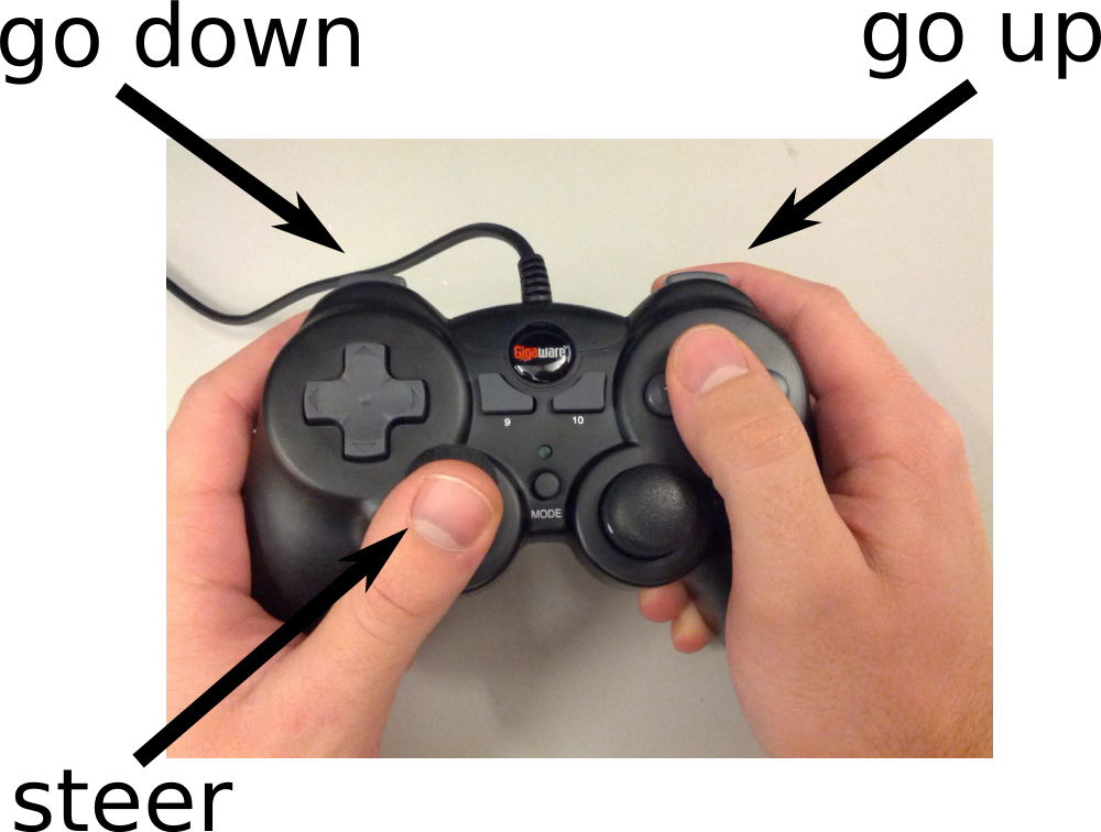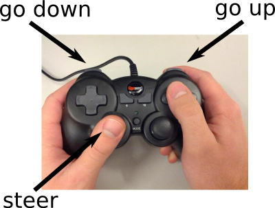System Commands: System level controls affect how the blimp reacts to various commands and disables or enables certain functions in the GUI. Each of the Run, Stop, and Reset buttons directly send the corresponding command to the blimp. In addition, the user can select an operating mode, which both turns collision avoidance on/off on the blimp and disables buttons in the GUI to limit accidental interference in different modes. Table 3.4 shows which commands are enabled in each mode. For example in joystick mode, the altitude and motor controls are disabled because these are controlled using the joystick instead as in figure 3.6.